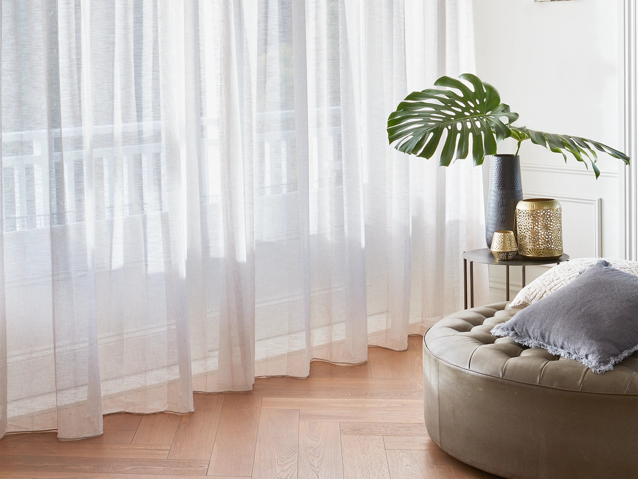With its extra wide width and subtle neutral colour palette, Cabo is a sheer developed for contemporary settings with very high ceilings. The fabric texture runs horizontally when installed continuously, but this sheer can also be installed as a conventional drop. It is neatly finished with a weighted hem and will work back with almost any setting whether ultra-modern or more traditional.