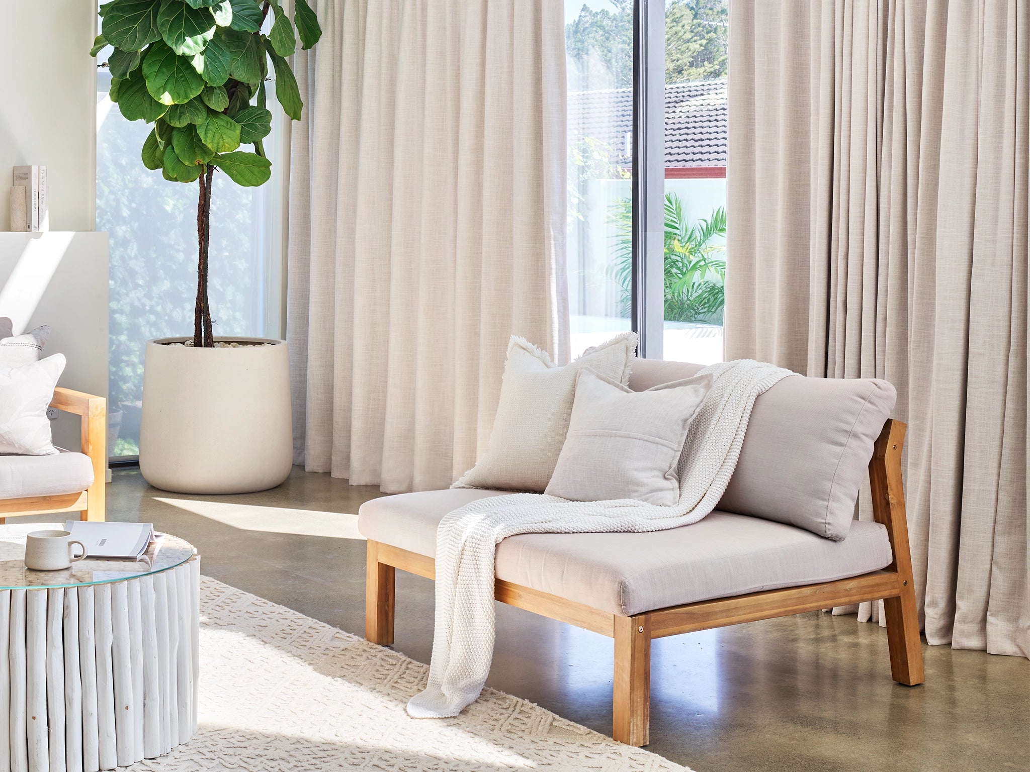 - Space permitting, add 20cm to each end (40cm in total) to give enough track for the curtains to be pulled off the window when open.