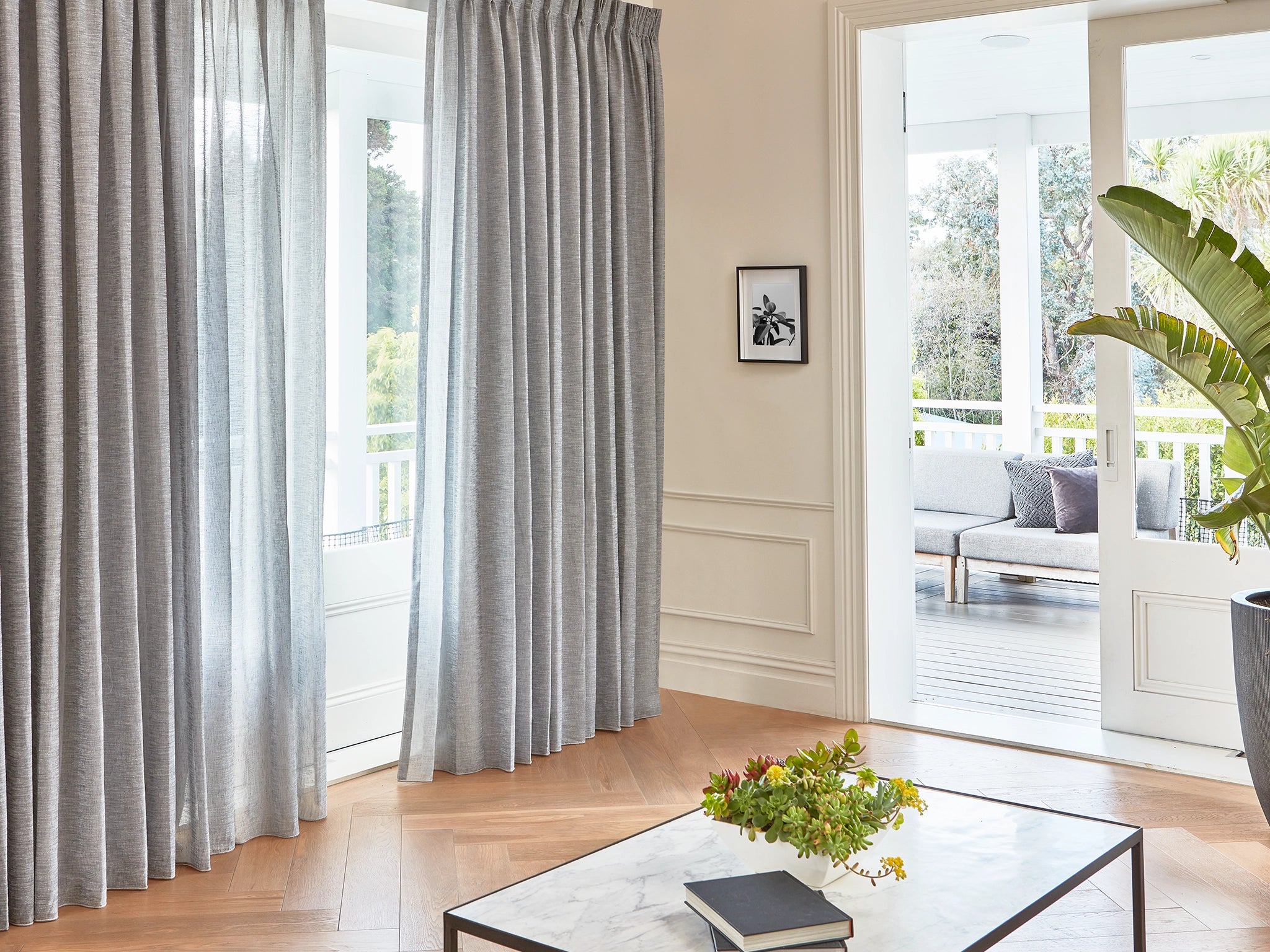 With its extra wide width and subtle neutral colour palette, Cabo is a sheer developed for contemporary settings with very high ceilings. The fabric texture runs horizontally when installed continuously, but this sheer can also be installed as a conventional drop. It is neatly finished with a weighted hem and will work back with almost any setting whether ultra-modern or more traditional.