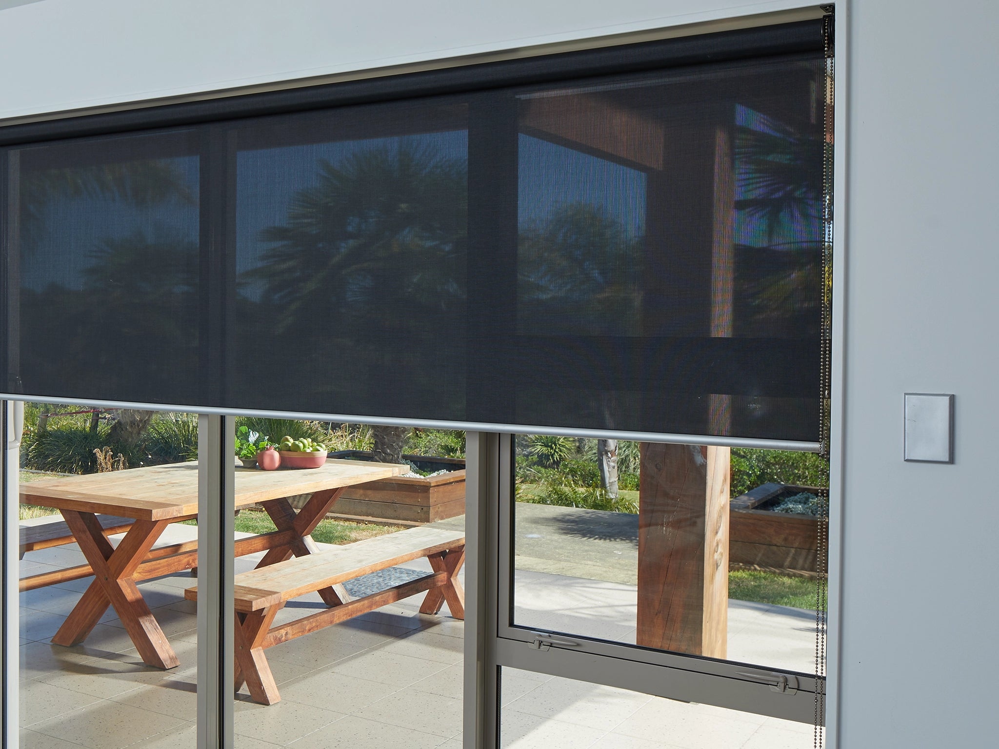 Masterscreen blockout is a 100% blockout fabric made with traditional sunscreen methods. It is durable, waterproof, easy to clean and hygienic and importantly fire retardant. This is the perfect fabric for residential and commercial use. It is support by a sunscreen option.