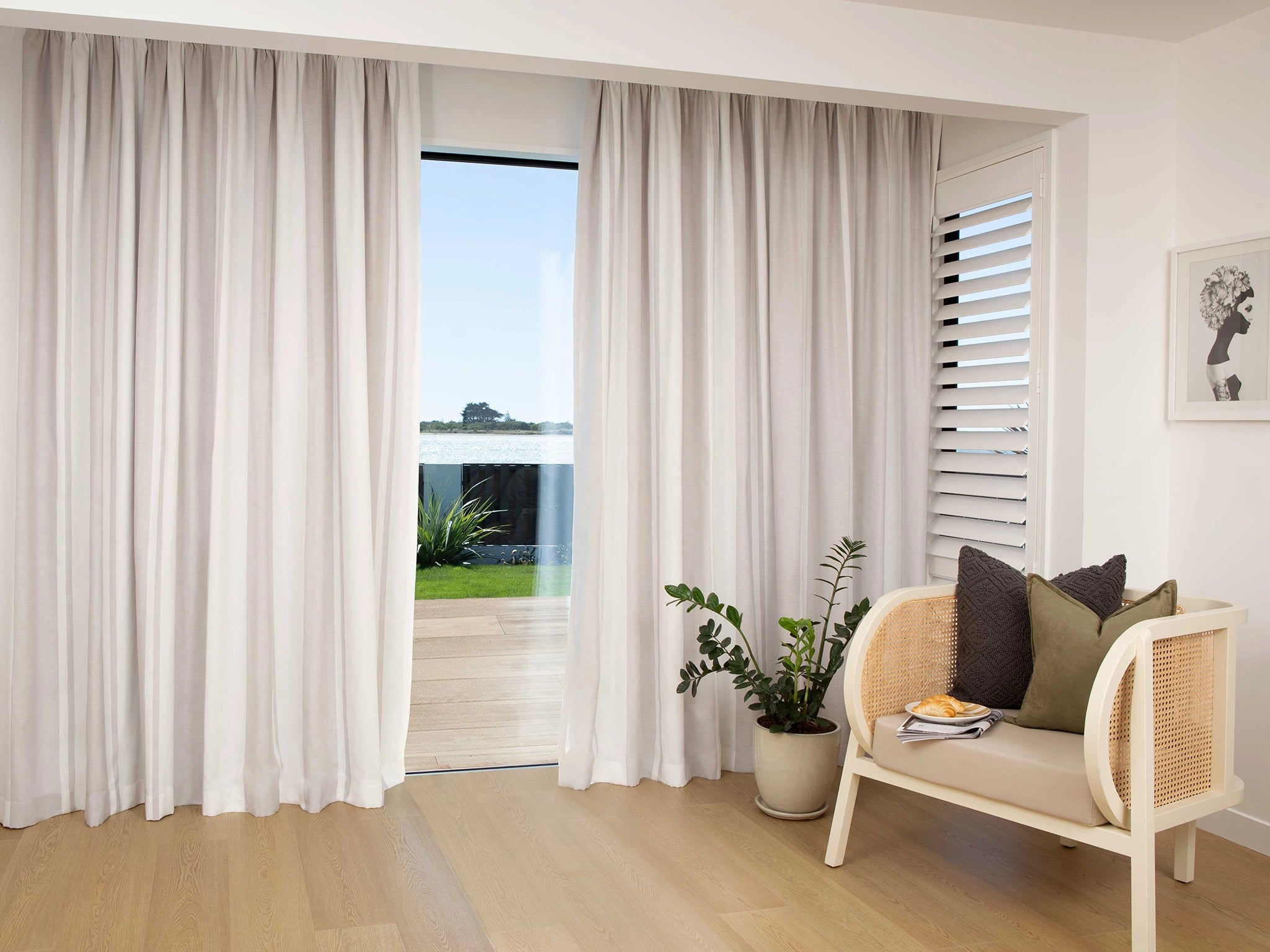 A beautiful solid stripe will suit both a contemporary and traditional home. Because of the muted base and soft stripe, this curtain can be paired with almost all flooring solutions.